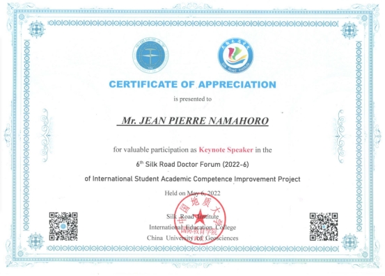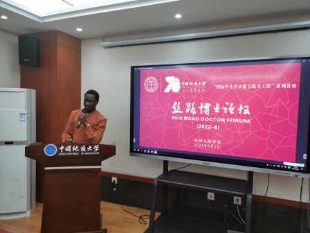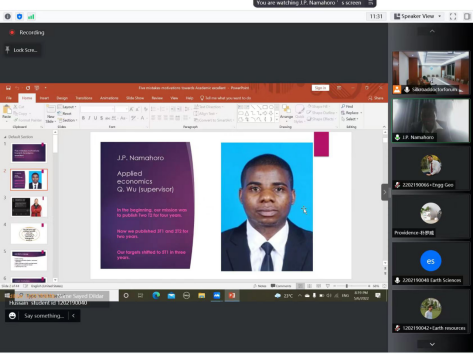 5月6日,2022年第六期丝路博士论坛由卢旺达籍经济管理公司博士研究生JEAN PIERRE NAMAHORO(简安)主讲,坦桑尼亚籍博士研究生 EDWIN ERNEST NYAKILLA 主持,JEAN PIERRE NAMAHORO以《5-Mistakes and Motivations towards Academic Excellence》为主题做论坛。