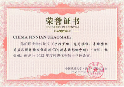 CHIMA FINNIAN UKAOMAH硕士学位论文题目为:“伊拉罗组、龙马溪组、牛蹄塘组页岩孔隙结构及组成对CO2封存的影响分析”。论文通过X射线衍射、N2吸附、CO2吸附、CH4吸附和MICP综合分析评价了四川盆地龙马溪和牛蹄塘富有机质页岩储层的CO2封存适宜性。该论文研究表明,Ilaro页岩是防止注入达荷美盆地东部储层CO2泄漏的合适盖层,也表明龙马溪页岩在CO2储存和CO2提高甲烷采收率方面优于牛蹄塘页岩。这些发现对于将来开发相似构造环境的页岩储层具有重要意义。该生为公司2019级石油与天然气工程专业硕士研究生,该生学业表现优异(GPA为4.13),在硕士学习期间,以第一作者身份发表了2篇由公司认定期刊分类中T2级别的高水平学术论文。
