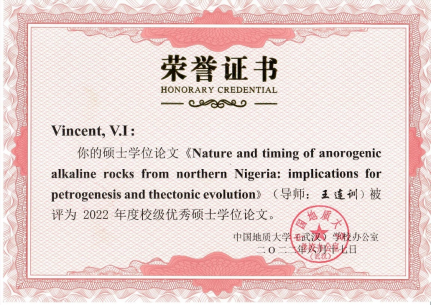 VICTOR IKECHUKWU VINCENT硕士学位论文题目为:“尼日利亚北部非造山碱性杂岩的地质特征和形成时代:对岩石成因和构造演化的制约”。论文对来自尼日利亚年轻花岗岩省(NaYG)的六个非造山正长岩-花岗岩杂岩体(Banke、Daura、Dutse、Dutsen Wai、Guraka和Zuku)进行了综合研究,以制约其岩浆源区、稀有金属矿化潜力和构造意义。该生为公司2019级矿物学、岩石学、矿床学专业硕士研究生,该生学业表现优异(GPA为4.04),在硕士学习期间,以第一作者身份发表了3篇高水平学术论文,均为公司认定期刊分类中T2级别论文(Lithos,IF= 3.961,American Mineralogist,IF= 1.968)。