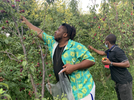 图 “钢铁侠”实践团成员体验采摘果子的乐趣