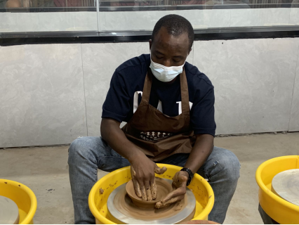 图 “钢铁侠”实践团团员塞拉利昂籍艾力辰正在认真制陶