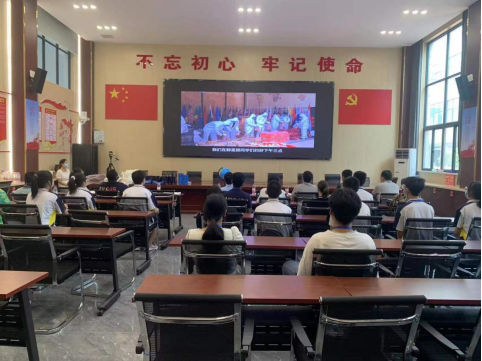 图 “钢铁侠”志愿服务队社会实践团师生和渑池二高师生一起观看《“钢铁侠”战“疫”日记》