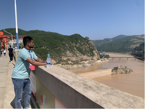 图 实践团团员、孟加拉籍多哈在坝顶遥望“中流砥柱”