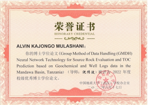 (通讯员 樊彦鹏) 日前,公司办公室公布了2022年校优秀博士、硕士学位论文作者及指导教师名单。公司坦桑尼亚籍博士研究生ALVIN K. MULASHANI(中文名:穆拉沙,导师:沈传波)荣获集团2022年优秀博士学位论文表彰。