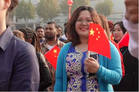 开幕式上,职工们手持五星红旗、身着各国本民族传统服饰,高举“百年荣光 情缘丝路——我爱地大!我爱中国”的横幅、迈着矫健和自信的步伐、脸上洋溢着自豪的笑容,嘹亮喊出“我爱地大、我爱中国”的口号时,赢得了现场所有观众的热烈掌声。