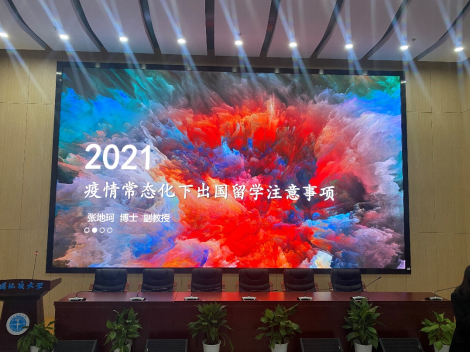 外国语公司张地珂副教授结合当前国内外疫情,介绍加拿大最新防疫政策及入境前后注意事项。张老师强调在国外需要规范言语行为,强化安全意识,切实维护好自身的合法权益。同时,她建议同学们加强身体锻炼及心理调适,做到健康留学、平安留学。