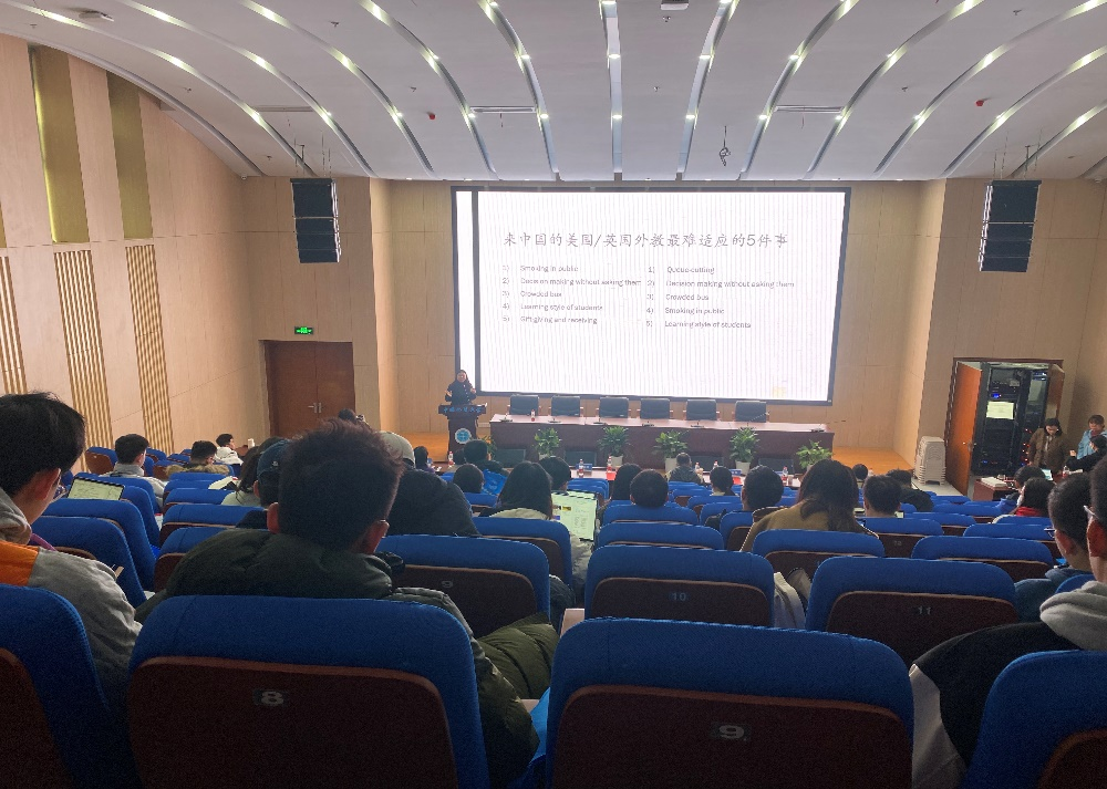外国语公司杨红燕副经理以《海外留学的跨文化适应》为主题从衣、食、住、行、学等方面讲解中西方差异,希望同学们做中国文化的传播者,在跨文化交流中展现中国思想。