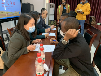 会后,国际员工跟湖北省对外友好服务中心工作人员咨询交流