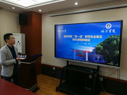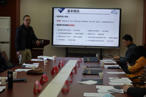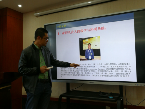 环境公司、材化公司、资源公司、计算机公司、地信公司、海洋公司的项目负责人依次围绕申报项目整体概况、申报建设各门具体课程基本情况、教学团队实力、课程体系建设与国际接轨情况、建设计划与保障措施等内容进行汇报。