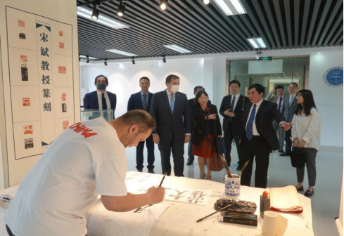 费尔南多·卢格里斯大使一行饶有兴致地参观了丝绸之路公司国际展厅的职工书法和篆刻作品。