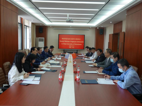 (通讯员:罗文旭 董夏 摄影:罗金刚)5月25日上午,乌拉圭驻华大使费尔南多·卢格里斯、乌拉圭驻上海总领事莱昂纳多·奥利维拉·德·安德烈一行来访,湖北省外办美大处处长胡健一行陪同。党委常委、副董事长赖旭龙会见来宾。长江日报高级编辑、公司兼职教授余熙,教务处、研究生、海洋公司十大正规买足球网站相关负责人参加会见。