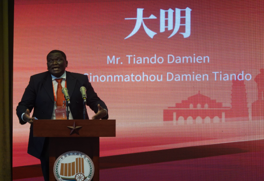 公司贝宁籍博士生大明在会议现场发言(一)