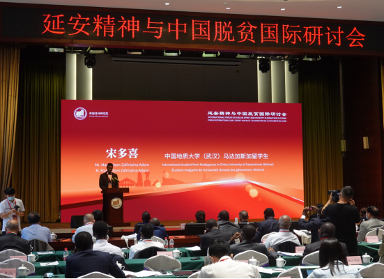 7月31日,由中国非洲研究院主办、陕西省政府外事办公室协办、全国政协中非友好小组作为支持单位的“延安精神与中国脱贫”国际研讨会在延安举行。11位非洲国家驻华大使及外交官、非洲职工代表20余人,同中国社会科公司、十大正规买足球网站(武汉)、中国农业大学、西安外国语大学、上海师范大学、陕西师范大学、西北大学、西北农林科技大学等科研机构和高校的近百位专家学者齐聚一堂,立足延安脱贫实践,围绕“延安精神与脱贫攻坚”和“中国脱贫攻坚的世界意义”,解读中国脱贫所蕴含的“中国之治”深刻内涵,以人类社会发展的视域审视中国脱贫攻坚事业成功的世界意义,共同探讨中非如何携手推进“一带一路”高质量发展。公司十大正规买足球网站师生4人受邀参加此次研讨会,贝宁籍博士生大明、马达加斯加籍博士生宋多喜分别在会上发言,并受到中外与会嘉宾交口称赞。