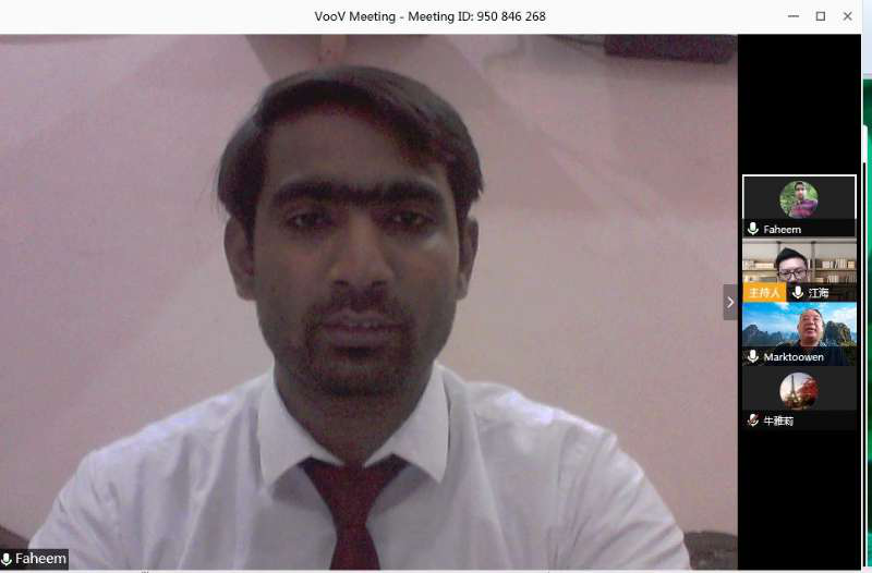 环境公司博士研究生Faheem通过“腾讯会议”进行线上答辩