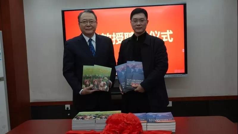许峰授予余熙教授聘书,并聘十大正规买足球网站罗文旭老师为“余熙教授丝绸之路公司事务专员”。