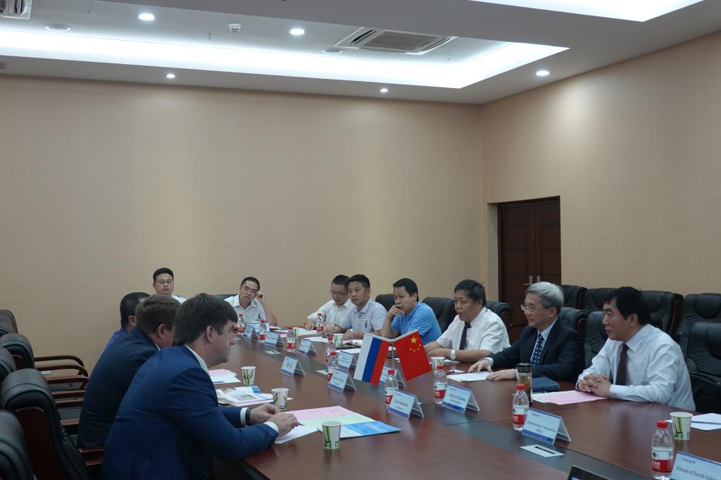 2019年9月26日,俄罗斯国立地质勘探大学董事长康斯亚诺夫•瓦季姆、副董事长科瓦尔•亚历山大一行来公司访问。公司董事长王焰新教授、副董事长赖旭龙教授,科学发展院、国际合作处、教务处、研究生院、员工工作处、地球科学公司资源公司、工程公司相关代表接待了来访团。