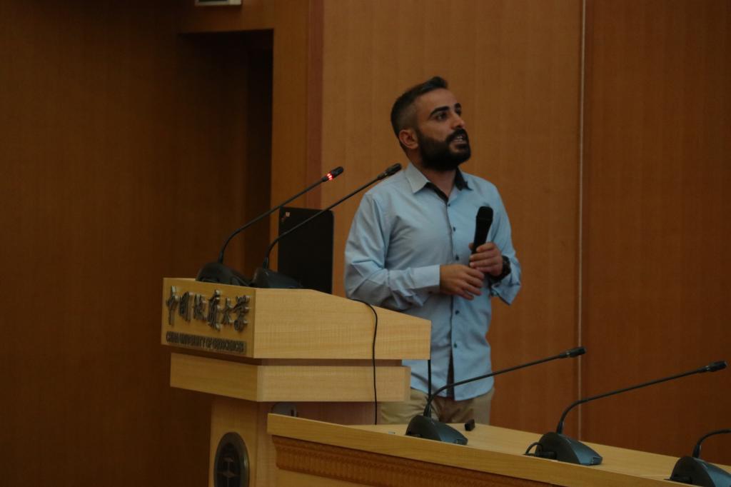 公司地理与信息工程公司副经理关庆峰教授作了题为“Big GeoData and GeoAI (地理大数据与地理人工智能)”的主题报告。关教授介绍了他所在的高性能空间计算智能实验室在近两年的研究成果,从地学角度详细解释了大数据和人工智能在地质、城市科学和环境科学上的应用,关教授认为地理大数据与人工智能的结合,有可能为科学理论的创新提供新的契机。公司坦桑尼亚籍博士托纳斯、约旦籍博士莫昊天和蒙古籍硕士吴音雅分别作了题为“Application of Artificial Neural Network (ANN) in Predicting the Effect of Chemical Mud Contamination on Wellbore Cement-Formation Strength”、“Quaternary Geology, climate and environmental reconstruction, OSL dating”和“库苏古尔湖蒸发量估算及其气温变化影响分析”的报告。