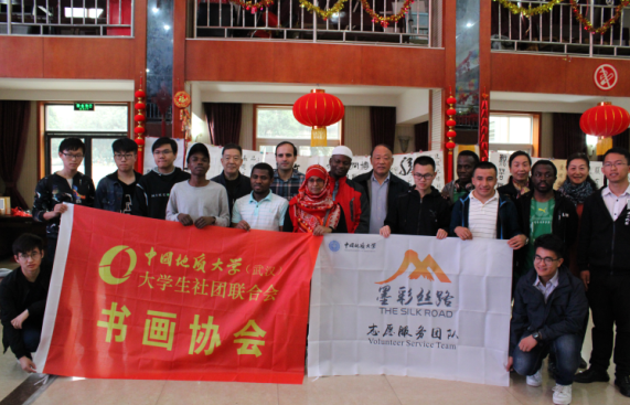 公司印度尼西亚杨奕志和莫桑比克莫德的用工整的楷书书写了“我爱地大”、“我爱中国”。活动现场,职工们纷纷向书法家李明玉老师求墨,争相与其合影。阿富汗的职工杨康十分积极的参加了此次活动,他在现场一直给写字的老师打下手,时不时与老师交流、请教书法的问题,他表示,自己已经在张建国老师的课上学习一学期书法,“非常喜爱中国书法,通过书法可以看出中国悠久的历史与文化。”莫桑比克的莫德对艺术很感兴趣,非常喜爱中国的书法艺术。他表示,与自己国家的文化相比,“中国文化要更加丰富。”不仅如此,参加笔会的职工每人一个汉字,写出曾被习总书记引用的《兵要》中“人之忠也,犹鱼之有渊”。