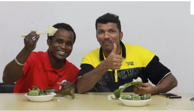 6月15日,丹桂苑职工公寓一楼飘散着阵阵粽叶的清香,公司退休教师在桌子边忙碌着,而他们新收的“弟子”——公司来自10个国家的20几名国际员工则在一旁对包粽子这门中国传统手艺跃跃欲试。
