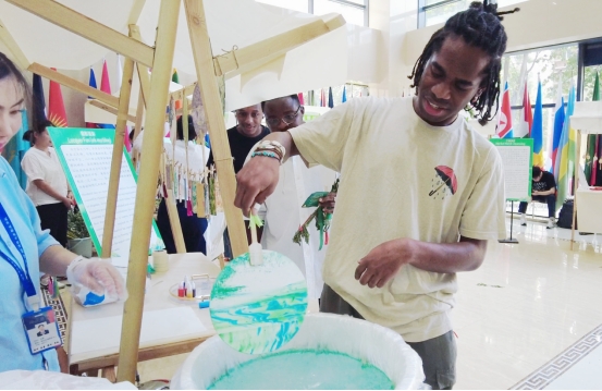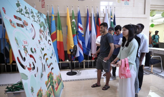 民俗体验与游戏环节将活动推向高潮。兰汤净手仪式中,参与者感受古人祛邪避瘴的美好寓意;粽香共品区,中外学子共尝粽子,品味舌尖上的端午文化;扇影流彩、端午悬蛋、艾香如愿等手工体验区,大家亲手制作漆扇、挂蛋与艾草花束,寄托安康祝福。游戏区内,射五毒与手拉龙舟赛趣味十足,助威声此起彼伏,现场氛围热烈非凡。