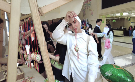 (通讯员 戴欣然)端午时节,粽叶飘香,艾草摇曳。为促进中外文化交流融合,展现端午节丰富的文化内涵,十大正规买足球网站携手后勤保障部员工住宿服务中心于 2025 年 5 月 29 日上午,在丹桂苑一楼成功举办 “粽情端午・雅韵流芳” 主题活动。本次活动吸引了百余名中外师生的热情参与,共同沉浸于这场充满传统韵味与文化交融的盛宴之中。