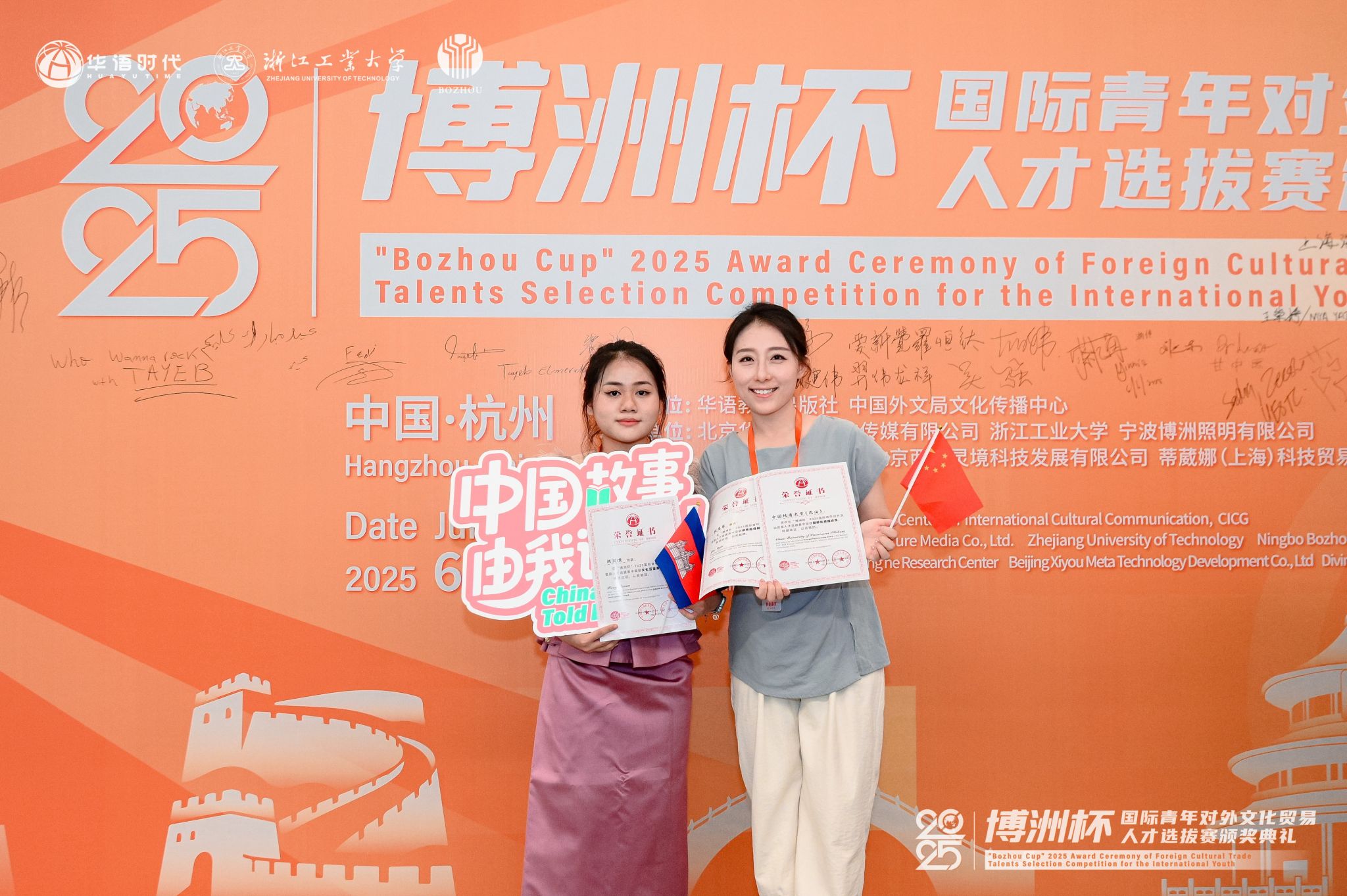 地大新闻网讯 (通讯员 殷思琴)6月6日,由中国外文局文化传播中心和华语教学出版社主办的“博洲杯”2025国际青年对外文化贸易人才选拔赛颁奖典礼在杭州举行。公司经济管理公司国际贸易专业2023级柬埔寨籍国际员工洪丽璇,凭借其原创视频作品《在中国,我遇到的语言“暴击”》获“文化互鉴友好奖”;指导老师殷思琴获评“优秀指导教师奖”;公司获得“院校优秀组织奖”。