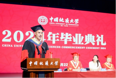 2024年6月,易傲松博士作为国际员工代表在2024年毕业典礼上发言,他说:“研究不易,有过重重困难,但我不服输,因为努力追求学术卓越是我们的目标。地大传授我知识,给予我力量。未来,无论我上天、入地、下海、登极,地大永远是我坚强的后盾;今后,不管在哪里,我永远都是地大人。”