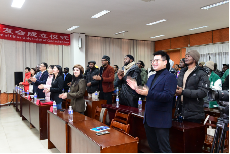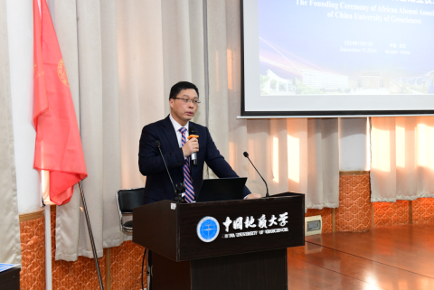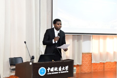 非洲员工会副会长苏丹籍莫天逸发言,表示非常荣幸见证非洲员工会的成立,这是中非关系不断发展的一个里程碑;象征着中非教育、文化和交流关系的加强;他鼓励非洲员工应珍惜在地大学习的经历与机会,站在学术创新的前沿,展示自己的学术成果,为母校赢得荣誉。