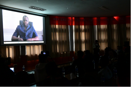 塞拉利昂国家投资委员会执行主席、非洲员工会会长桑迪(SANDY EDWAR DHINGA)视频发言,表示将带领非洲员工会搭建一个广阔的合作平台,让更多的非洲优秀学子了解中国、了解地大,来地大学习,非洲员工会将通过举办各种形式的交流活动,增强中非经济、文化、教育及科研等方面的交流与发展。