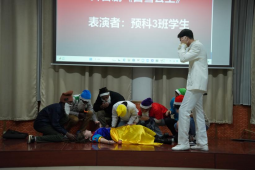 预科教师张锁茹为“文体活动积极分子”的同学颁发证书和奖品