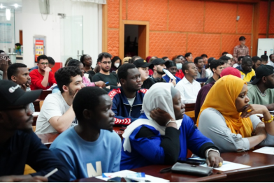 来自喻家山派出所的王璨警官详细讲解了与国际员工相关的法律法规及最新相关政策,提醒同学们谨防非法拘留、非法就业、电信诈骗等违法行为,并强调,“法律面前人人平等”、“外国人在中国领土需遵守中国法律,否则将会被追究法律责任”。