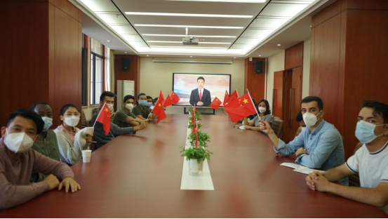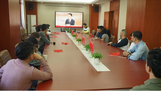 (通讯员 赵阳平 摄影 罗金刚)10月22日上午,公司来自约旦、越南、老挝、塞拉利昂、柬埔寨、蒙古、莫桑比克等国家的员工观看党的二十大闭幕会直播,其他同学通过广播、网络、手机等平台收听收看闭幕会。
