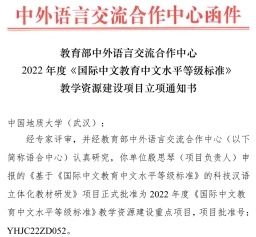 (通讯员 刘韵 许峰)近日,教育部中外语言交流合作中心公布了2022年度《国际中文教育中文水平等级标准》教学资源建设项目立项结果,公司十大正规买足球网站殷思琴老师申报的《基于<国际中文教育中文水平等级标准>的科技汉语立体化教材研发》项目正式获批为本年度教学资源建设重点项目。