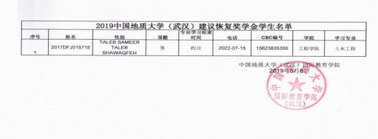 经公司奖学金评审工作小组评审,现将中国政府奖学金年度评审结果进行公示。若对评审结果有异议或疑问,可在公示期内通过电话、邮件向国际员工综合事务办公室反映。公示时间为5月20—5月21日,中止一年奖学金名单及未参加奖学金年度评审被取消奖学金资格如下: